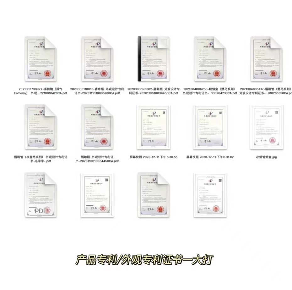 青眼注意到,在近日发布的公告中,浮气Fomomy还展示了其十余份专利证书,其中包括产品专利与外观专利。