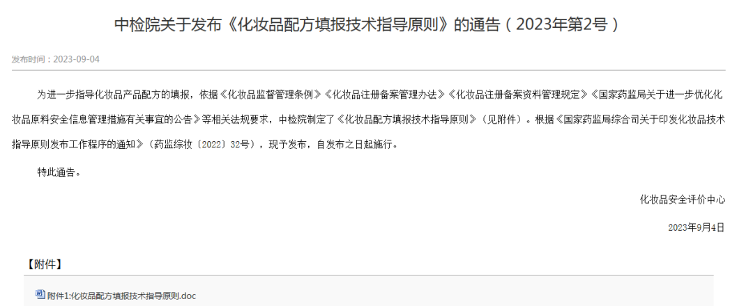同时,中检院还发布了《化妆品配方填报技术指导原则》用以指导化妆品配方的信息填报。多位行业人士表示,“在新规之前没有这一指导原则,这是首次发布。”