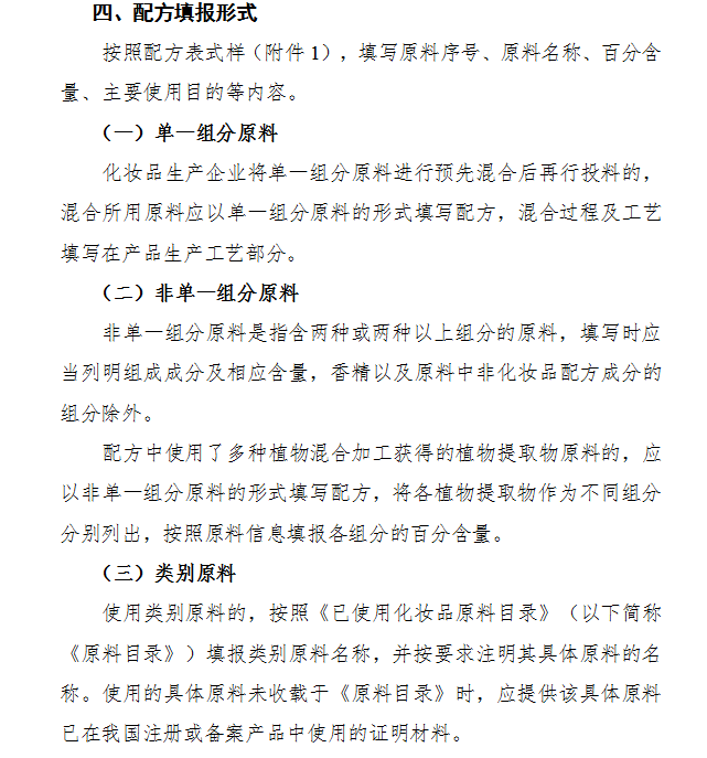 由于化妆品的配方信息本身也涉及了原料信息,因此,《化妆品配方填报技术指导原则》(下称《配方填报指导原则》)也于同日发布。