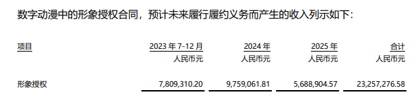 根据形象授权合同,华强方特数字动漫预计将在未来两年半产生收入2325.73万元。