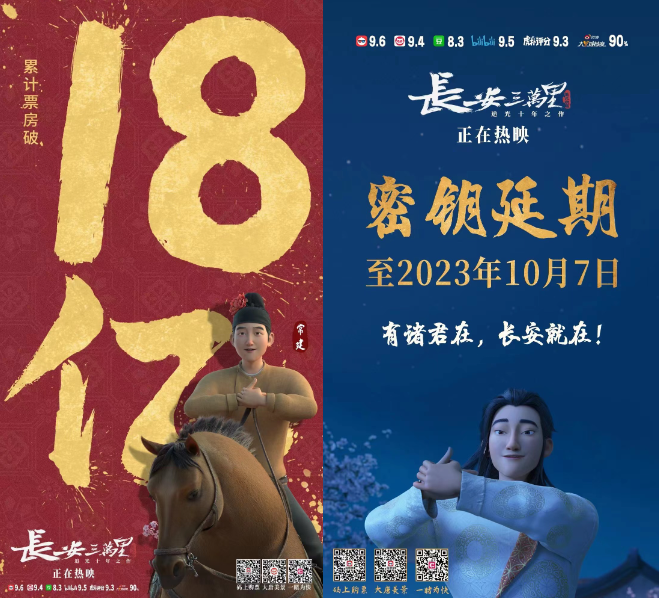 方特动漫的《熊出没9》票房约15亿,追光动画的《长安三万里》票房超18亿,光线传媒发行的《深海》票房超9亿、《茶啊二中》票房近4亿…