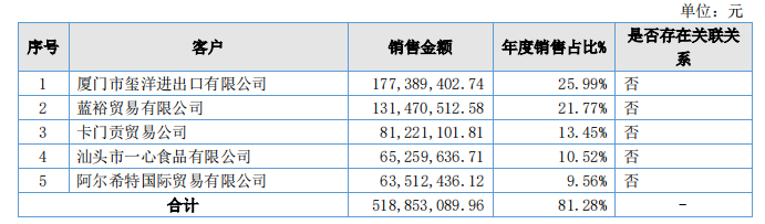 动漫食品2022年前五大客户