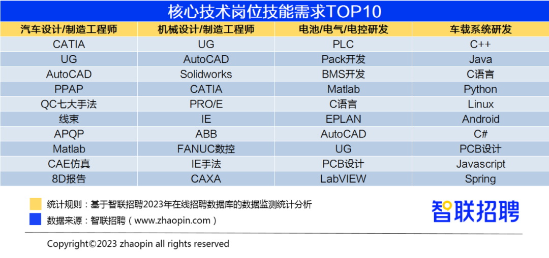 从技能需求来看,除了专业软件如CATIA、UG的操作能力外,编程能力,尤其是C语言、C++和Java也成为了车载软件研发岗位的稀缺技能。电子设计自动化软件在进行电路板设计的PCB设计方面也有广泛的应用,这进一步强调了软件操作和编程能力在新能源汽车研发中正在承担不可或缺的角色。