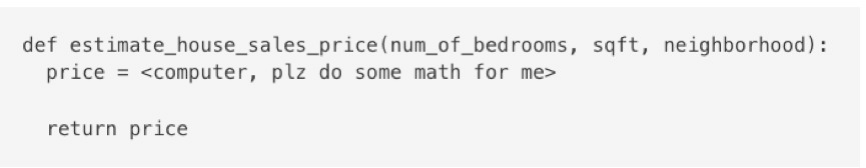 很可能你完全不了解一组指标数据是怎么预估出房产价值的,也就是说你得到了一个你不完全了解其工作原理,只知道它能帮你预估房价的函数。
