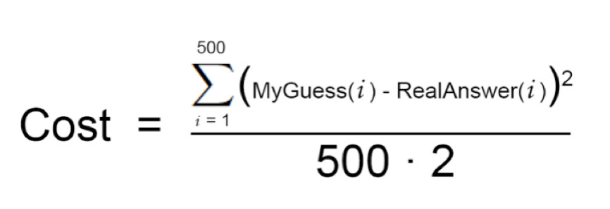 假如你数据库里有500个房屋成交信息,而通过测试这些交易信息得出的你的函数预估偏差总值达到了86,123,373美元,这数字就代表着你的函数当前的偏差总值。现在,把这个偏差总值除以500,得出每间房子预估偏差的平均值,把这个平均值暂且先称为函数的“成本费用”。如果你能通过对权衡指标的把玩从而把“成本费用”降低至零,那么你的程序就完美了。这就意味着,根据输入的数据信息,你的程序就能够相对准确地对房子价值进行预估。