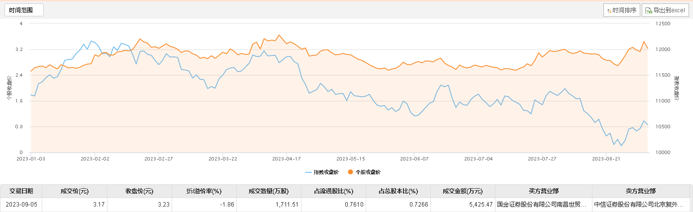我爱我家9月5日大宗交易成交1711.51万股,成交额5425.47万元,占当日总成交额的6.9%,成交价3.17元,较市场收盘价3.23元折价1.86%。