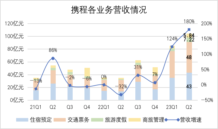 分业务来看,住宿预订、交通票务预订、旅游度假、商旅管理四个业务板块同比皆明显复苏。其中旅游管理业务增长最为显著,二季度营收7.22亿元,同比增长492%。