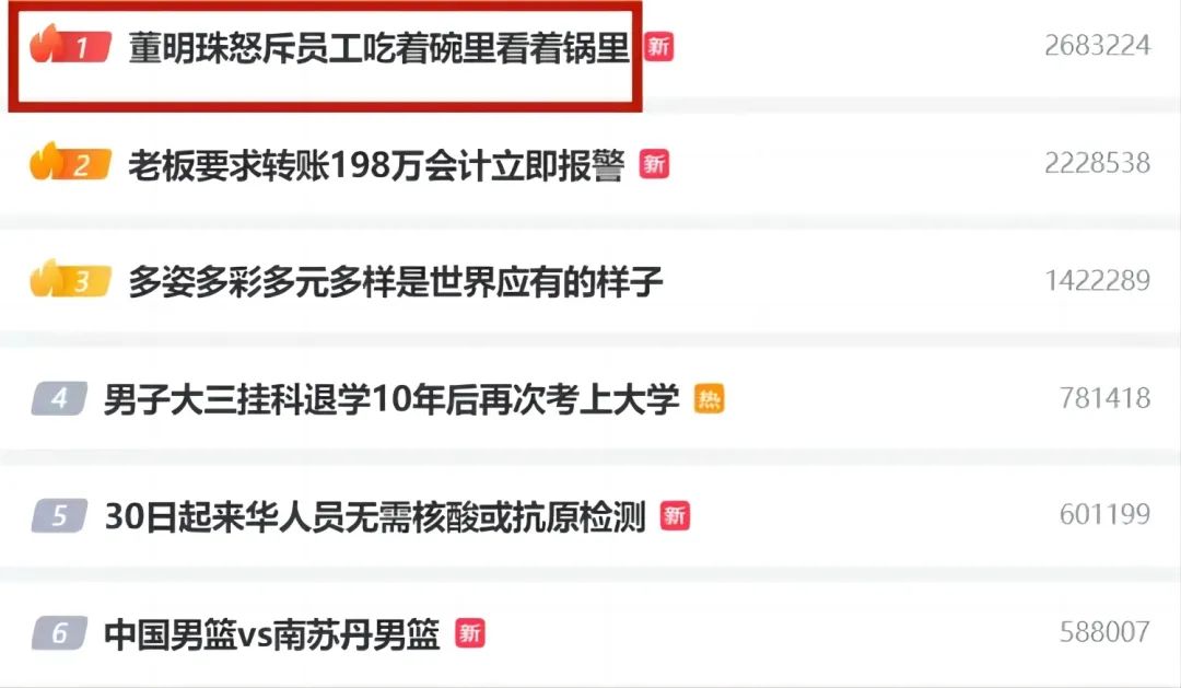 果然,这次也不例外。被打上“怒斥”的前缀情绪,董明珠迅速登上热搜第一。