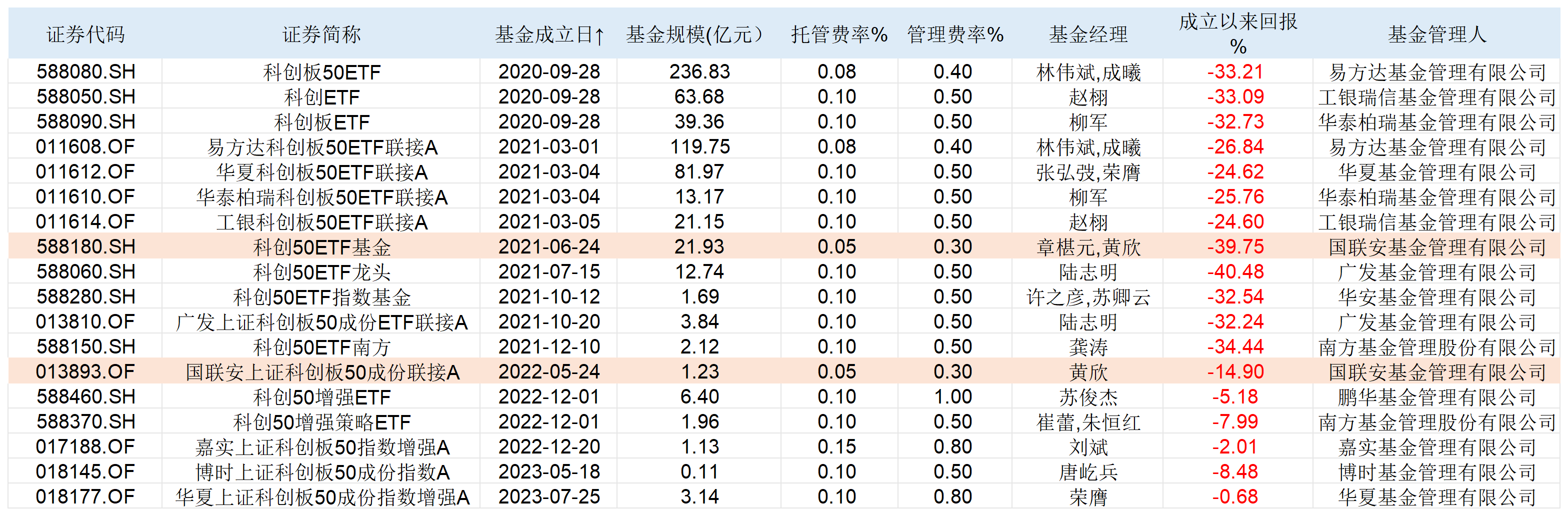 目前18只科创50相关产品业绩尽墨,即使今年新成立的博时上证科创板50指数基金、华夏上证科创板50指数增强基金,业绩也分别为-8.48%、-0.68%。