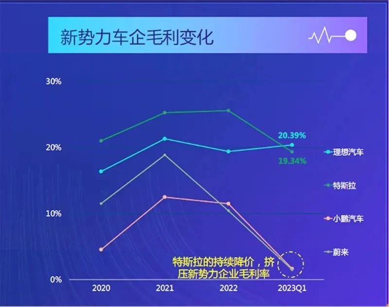 特斯拉的价格战并没有结束,挑战成本底线依然会是特斯拉下一步的行动,Model 3也没有到达价格的底线。根据汽车之家的研究数据显示,特斯拉的频繁降价并没有影响到它的毛利率,反而对新势力形成了挤压,后续还有很大的降价空间。