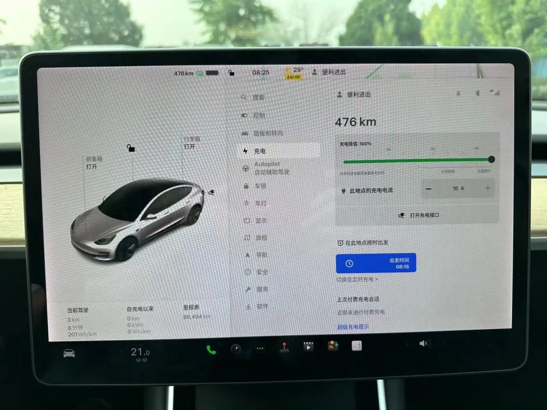 4年半8.6万公里长续航版Model 3,目前满电表显续航476km