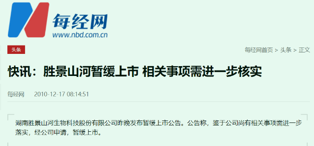 企业在挂牌前爆出重大风险,最终折戟的例子都有,最极端当属黄酒企业——胜景山河,在挂牌上市前一天都举办了盛大的上市庆祝酒会。不料当晚被爆财务造假,被突然叫停,煮熟的鸭子居然飞走了。