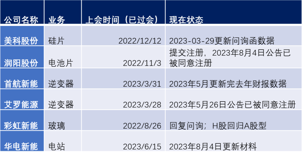 现在,光伏企业过会后、等待挂牌的企业不少——美科股份(已过会)、润阳股份(已注册生效)、首航新能(已过会)、艾罗能源(已注册生效)、华电新能(已过会)等企业均已过会。