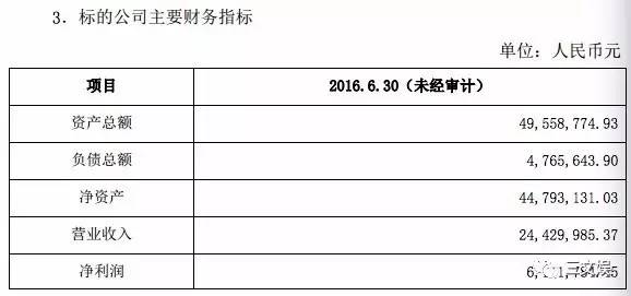 公告还披露了同道大叔公司的财务概况,截至2016年6月30日,其未经审计的营业收入约2443万元,净利润约617万元。