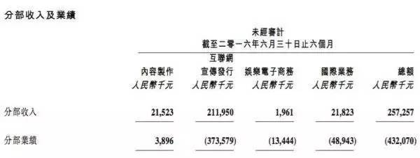 阿里影业发布的2016半年报,得益于互联网发行业务(主要靠粤科)与去年同期相比20倍的疯狂增长,集团总收入达到2.57亿元,同比增速高达1022%;但亏损扩大至4.66亿,主要因增加淘票票的市场推广及票补力度所致。阿里影业太需要一张成绩单来回应外界的质疑。