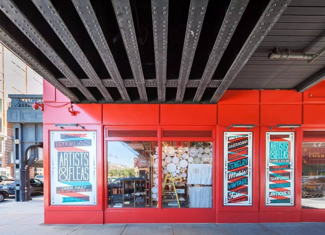 Artists &Fleas是个2003年建立从最初的周末仓库市场发展而来,主要是新奇的小玩物,起源于2003年在威廉斯堡北六街的一个旧仓库,以周末市场的形式汇集了周围的创意和手工艺者、艺术家等。