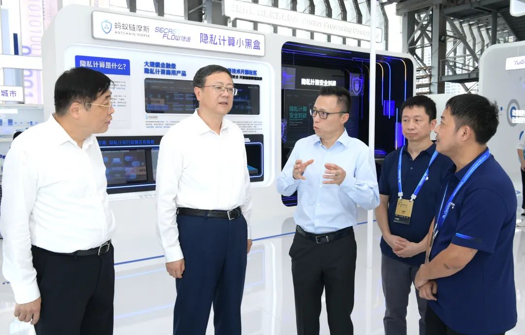 作为全球高级别金融科技大会,本届外滩大会以“科技,创造可持续未来”为主题,在黄浦江畔的黄浦世博园区设立展示区,汇聚30余家金融科技企业的前沿技术和创新场景。陈吉宁在展示区先后察看蚂蚁链“城市链”、复旦大学先进6G光子宽带太赫兹通信系统、蚂蚁金融大模型以及金融服务供应商相关展台,详细了解区块链、大数据、人工智能等前沿技术与金融行业深度融合、赋能城市转型、产业升级的实践探索,并就金融科技最新进展以及新业态、新模式、新业务落地覆盖等情况与相关企业机构负责人深入交流。陈吉宁说,推动上海国际金融中心和国际科创中心联动发展,金融科技是重要切入点和着力点。上海金融要素市场完备,科技创新资源活跃、各类应用场景丰富,要支持企业准确把握科技发展趋势和行业发展前景,不断开辟新赛道、突破新技术、探索新应用、推出新产品,助力金融更好服务实体经济和科技创新。要优化制度供给,拓展应用场景,构建覆盖面更广的应用生态网络。要创新监管方式,强化金融安全、数据治理、隐私保护,推动行业更加健康发展,更好助力经济高质量发展、创造高品质生活、实现高效能治理。