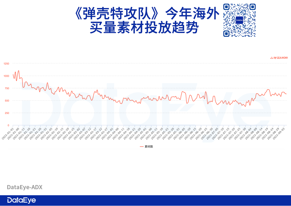 游戏从8月21日开始增加相关素材的投放,并在8月31日迎来巅峰,后续则趋于平稳。该趋势与前文的预估下载趋势,基本吻合。