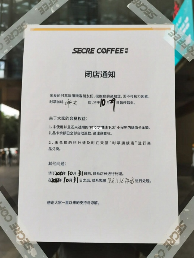 时萃的闭店通知 图片来源:小红书
