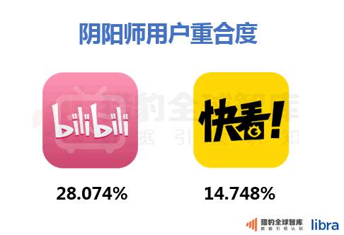 《阴阳师》的声优阵容、角色背景更是自带浓厚的日系漫画元素,吸引了大量二次元用户。通过libra大数据也可以发现发现,在“哔哩哔哩动画”与“快看”两个二次元用户聚集地中,超过1/4的哔哩哔哩用户与14.748%的快看用户安装使用了阴阳师游戏。