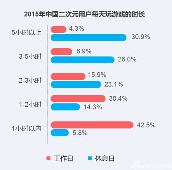 国内二次元用户玩游戏的时间较长,属于重度游戏玩家。