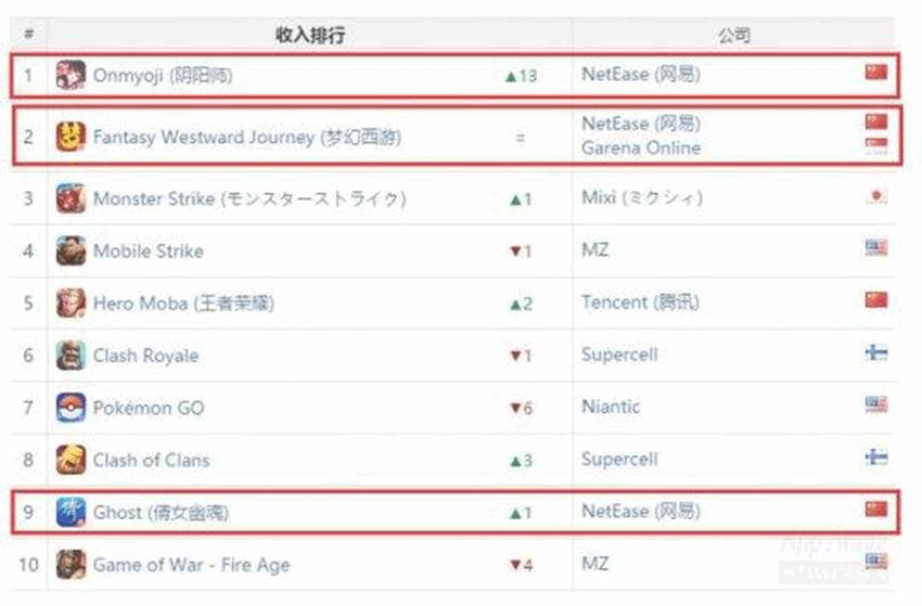在appannie10月公布手游数据中,网易凭借《阴阳师》的成功,超越腾讯成为全球收入第一的发行商,而《阴阳师》也在iOS收入榜上位居第一。
