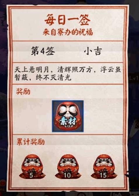 与其他卡牌类游戏的签到设置类似,阴阳师为连续3天、5天、7天签到设置递进的奖励,即使在工作日没有大块时间玩游戏,玩家亦可抽出短暂时间完成签到,每天为设置一个小目标,大大增加了用户的粘性。