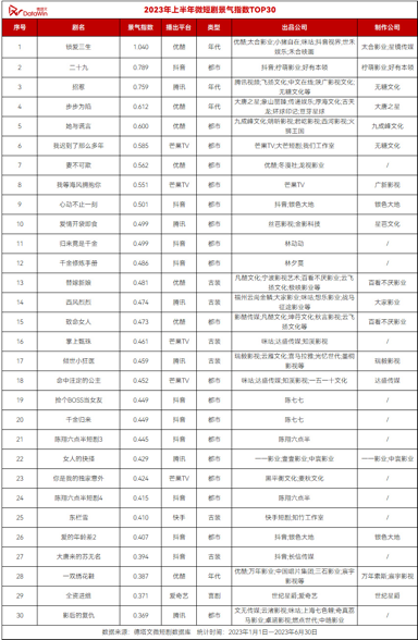 在2023年上半年微短剧景气指数TOP10中,长视频共拿下8席,其中由优酷独播的《锁爱三生》更拿下了2023二季度榜和半年景气榜双榜榜首。