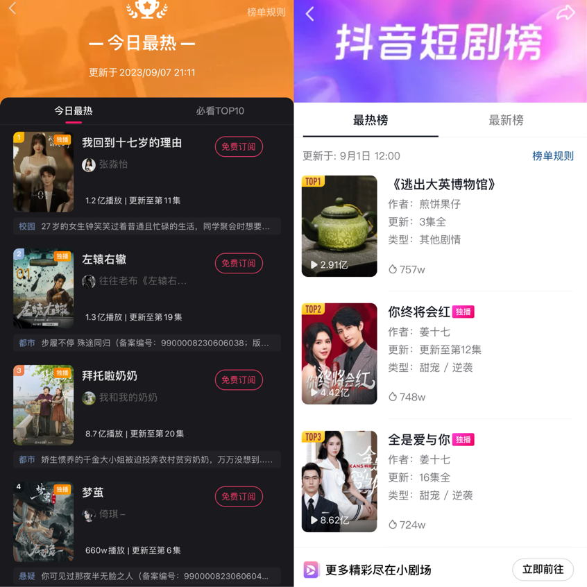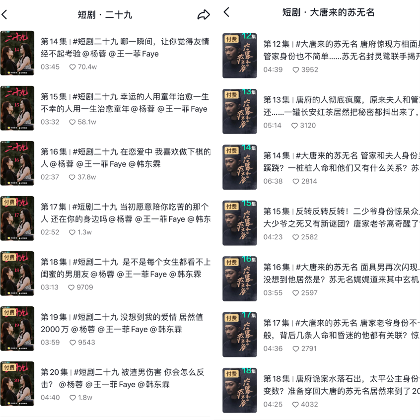 快手则选择坚守付费道路,侧重将小程序短剧迁移进站内账号中分发、运营,并可能尝试搭建与短剧对应的会员体系。