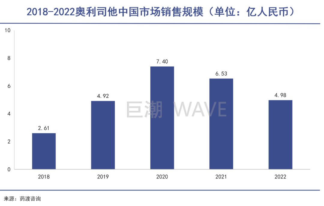 米内网数据显示,2018年奥利司他的中国市场规模为2.61亿元,并在2020年快速增长到7.4亿元,期间复合年增长率为68.38%。但是此后,奥利司他突然“受冷”,销量直线回落,2022年该药物在中国的总体规模仅为4.98亿元。