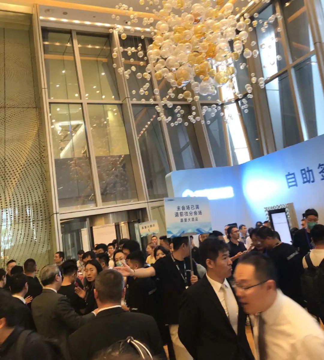 这场会议,吸引了来自全国各地的人。因为人数实在太多,在开场前三分钟,现场关闭了通往三层主会场的通道,然后引导参会者前往旁边的嘉里大厦分会场,那里有大屏幕可以看直播。
