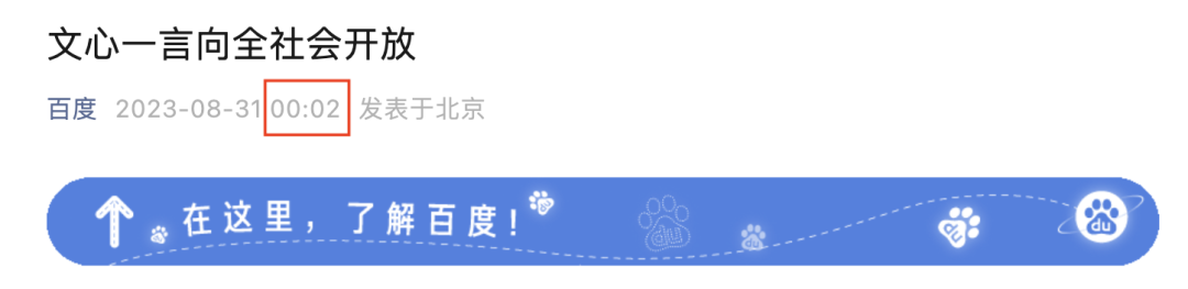 8月31日凌晨,0点刚过,百度通过公众号对外宣布,文心一言向全社会开放。在新闻稿中,百度特地用到了“率先”一词。