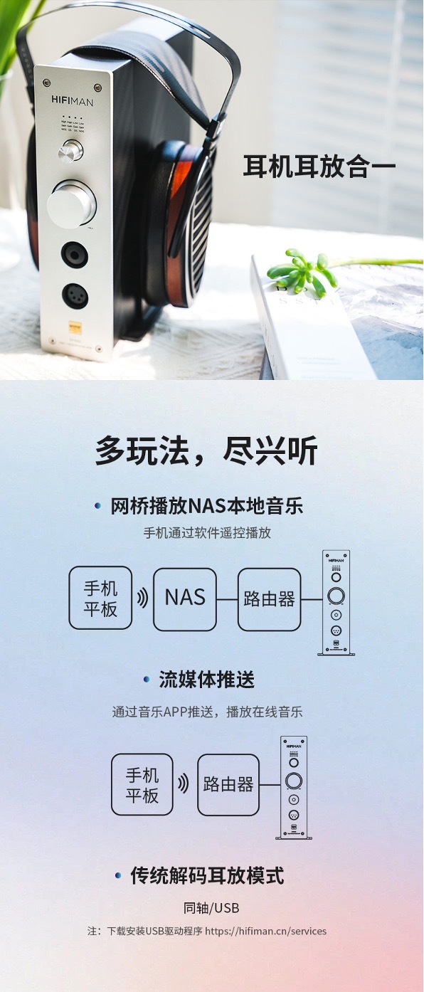 EF500拥有超级多重玩法,出来传统解码耳放接驳形式,也可通过网桥播放NAS本地音乐,并可用手机通过软件遥控播放,通过音乐类APP推送,播放在线高清音乐。