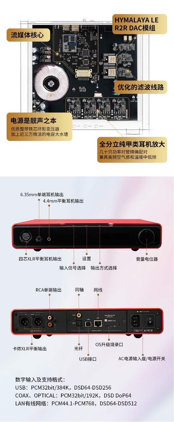 LAN有线网络:PCM44.1-PCM768,DSD64-DSD512