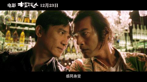 之前说“不敢直视梁朝伟眼睛“的金城武又再一次与他搭档,同样也是饰演一名“摆渡人”,片中他长发绑起,偶尔身着一身日系中山装亮相,与梁朝伟“打情骂俏”饰演他的好基友,又对摆渡的对象万般体贴。