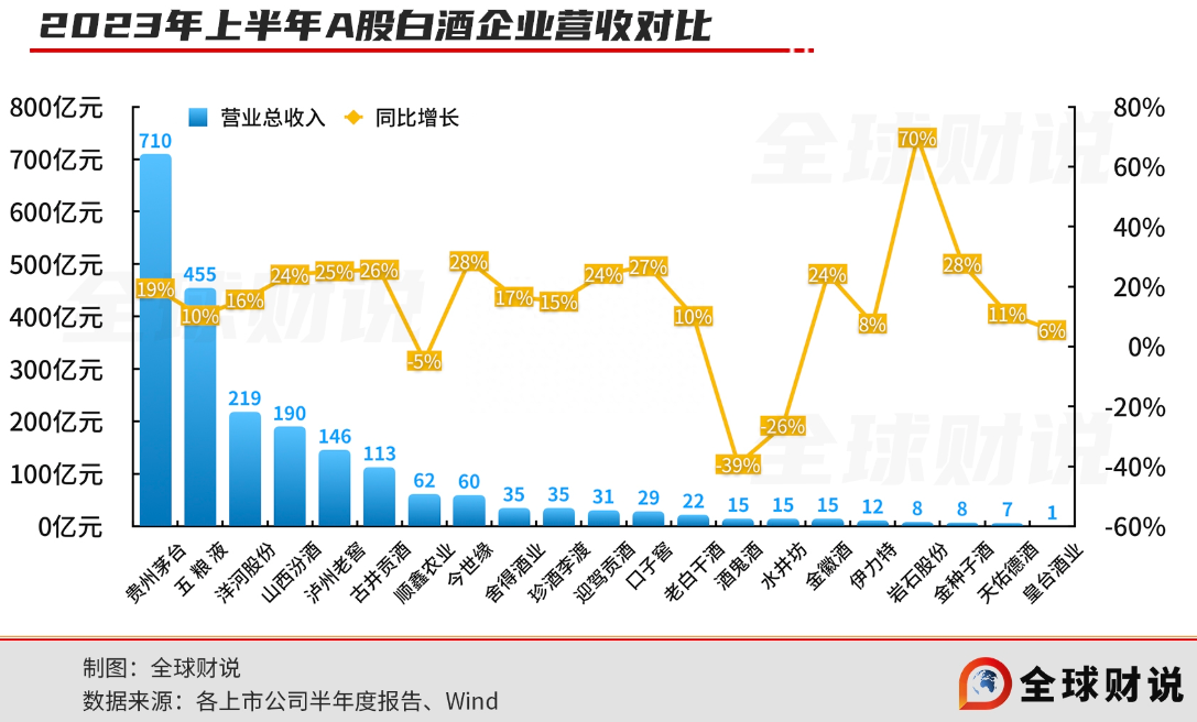 结合21家已上市白酒公司2023半年报来统计,若从营收涨幅来看,酒鬼酒表现最差,排在倒数第一。若从净利润增速来看,酒鬼酒也是在倒数第三的位置。