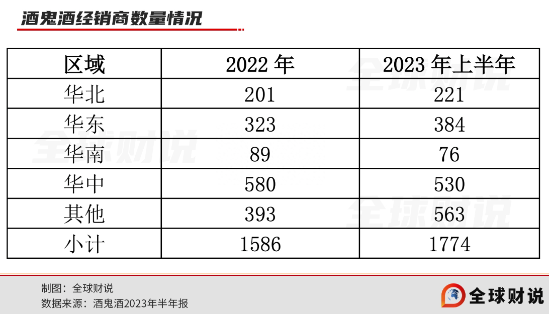 要知道,相较于头部白酒企业,酒鬼酒更多仍为区域性代表酒企,源于湖南的酒鬼酒主战场正是华中地区。但在2023年上半年,在全体经销商数量增长的情况下,大本营华中地区经销商数量却减少了50家。