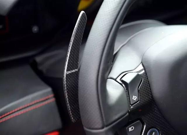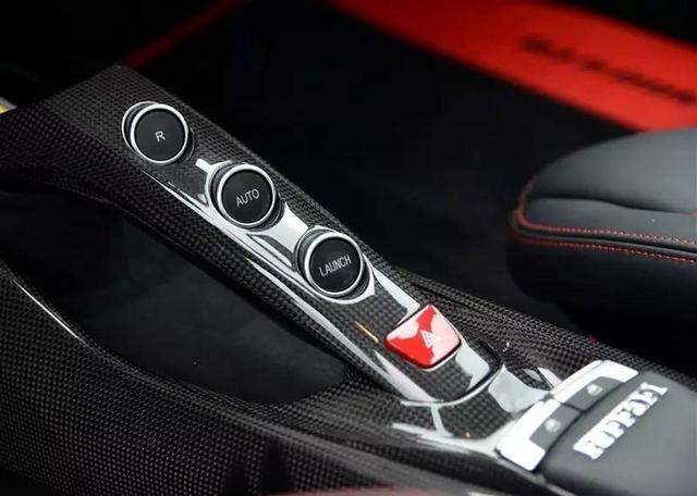 法拉利的车内是没有换挡杆的,只有拨片和按钮。当你启动发动机后,按下AUTO(这时为自动模式),