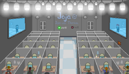 这只是一段小小的序曲,但无疑意味着《星露谷》从开头就隐含着对于现代生活秩序的反叛尝试。你做出了离开资本主义的决定,但你能够将它贯彻到底吗?在游戏过程中,JOJA公司既是主角在游戏一开始所要逃离的梦魇,也是贯彻游戏始终的巨大诱惑——来到鹈鹕镇,你会发现JOJA公司旗下的JOJA超市已经开到了这里,为田园小镇中的一切重要变化都提供了另一个资本主义式的选择。