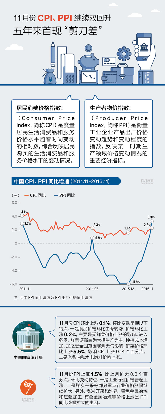 【图解】11月份CPI、PPI继续双回升 五年来首现“剪刀差”