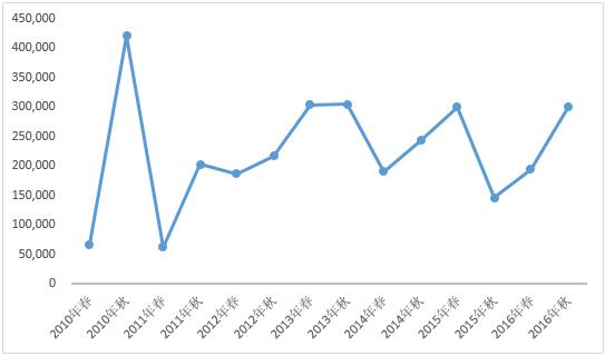 2010年至今,龙泉窑瓷器发展可谓一路平稳,成交量、成交额基本保持小幅增长。单价一路走高,今年秋,北京保利推出一个“三叠·五缾—东瀛清赏宋元明清花器”专场,此专场共计推出来自日本的宋元明清5件花器,其中“龙泉梅子青摩羯耳盘口瓶”的资料记载为日本关西重要茶道家族收藏,最终以1,265万的高价易手。除了色泽如玉的龙泉青瓷,磁州窑的白地黑花也深受日本藏家喜爱。同一专场里“磁州窑白地黑花菊纹带盖梅瓶”以1,024万元成交,是2010年以来,磁州窑瓷器成交的最高价。由此可见,虽然国内一直以明清官窑瓷器独享尊荣,但现在清丽的宋代瓷、质朴大气的民窑瓷器也开始受到藏家的热捧。