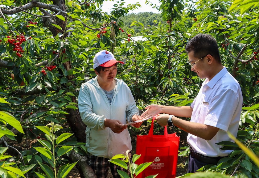 以平度市口子村为例,青岛农商银行平度支行通过贷款助农造田还耕,助力村民将4000亩山峦开辟出2000亩樱桃园。