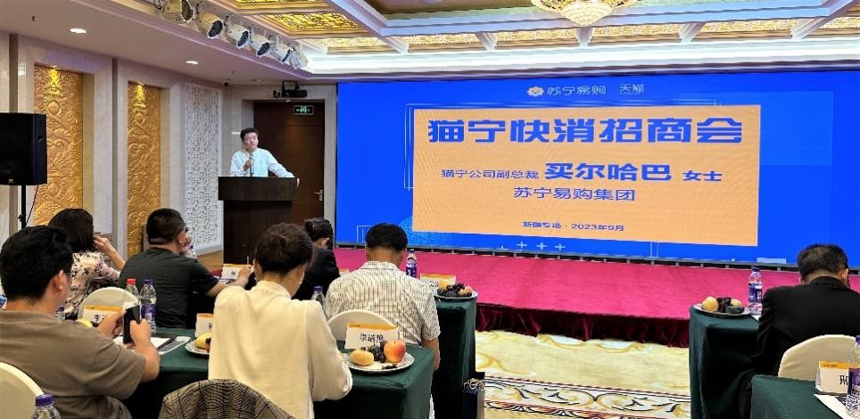 为积极响应国家乡村振兴和东西部协作战略,发挥龙头电商企业在消费帮扶、产业带动方面的有效价值。9月6日,在新疆维吾尔自治区商务厅的大力支持和指导下,苏宁易购猫宁公司在乌鲁木齐成功举办“向新出发,聚力共赢——快消招商大会”,正式启动“新疆好物甄选计划”并推出“政策五折优惠、前三个月免考核期,搭建专项运营团队全流程协助,提供系统化电商方案”四大支持服务,进一步完善苏宁易购天猫官方旗舰店和新疆地区特色产品基地合作机制,助推地方特色产品销往全国。