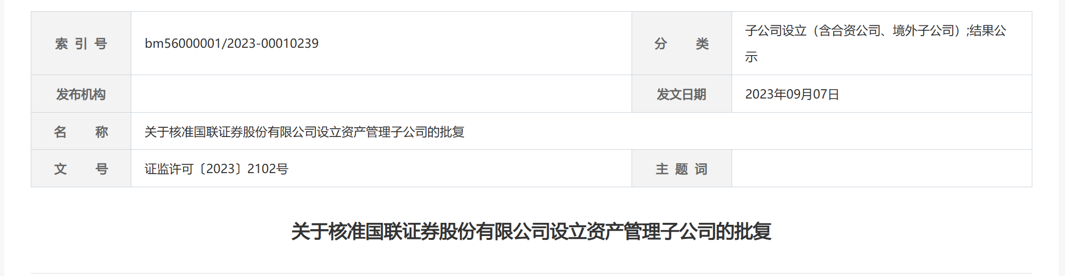 国联证券于2022年4月公告表示拟设立券商资管子公司;华安证券于当年6月份也官宣了设立券商资管子公司的消息。