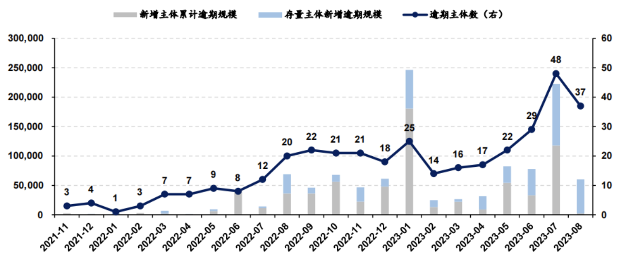 根据上海票据交易所(以下简称“票交所”)9月7日公布的名单,8月共2597家主体出现承兑人逾期现象,其中发债城投37家,较7月减少11家。