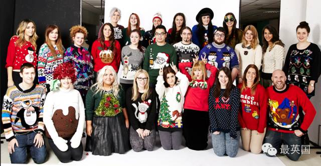在英国,每一年的圣诞前都会有Christmas Jumpers Day,简单来说就是,在这天大部分人都会穿上各种图案的圣诞毛衣,而且是挺傻的那种毛衣。。。