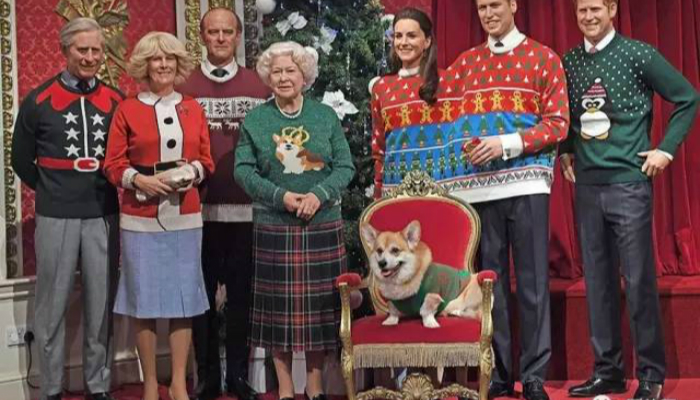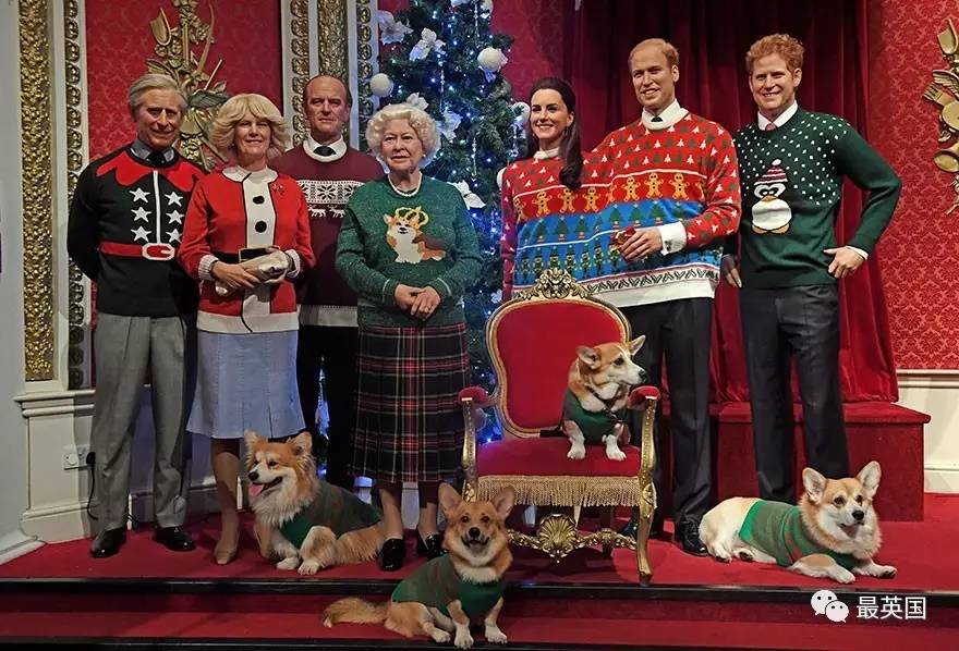 其实,这是杜莎夫人蜡像馆经过皇室的同意,为了庆祝圣诞节,让皇室成员们的蜡像穿上了圣诞毛衣,拍成照片传递祝福...