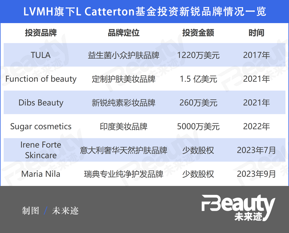 《FBeauty未来迹》整理发现,近几年LVMH旗下基金机构在投资方面动向频频,投资美妆品牌基于潜力巨大的天然、纯净、定制化发展的小众奢侈的品牌定位。