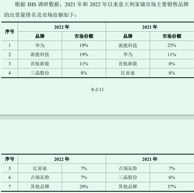 验证意大利市场规模,还有一个更直接的办法,就是在2022年度与华为并列意大利户储出货量第一的派能科技。