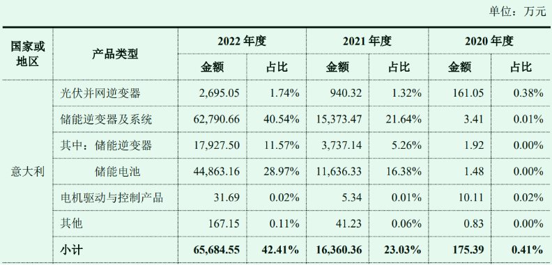 9月4日,体量规模不及首航新能的三晶股份在沪市主板成功过会。实际上,比三晶股份跑得更快的是艾罗能源,已于2023年5月16日注册生效。据艾罗能源披露,公司2022 年在意大利地区实现销售收入4.97 亿元,占主营业务收入比例为10.78%。